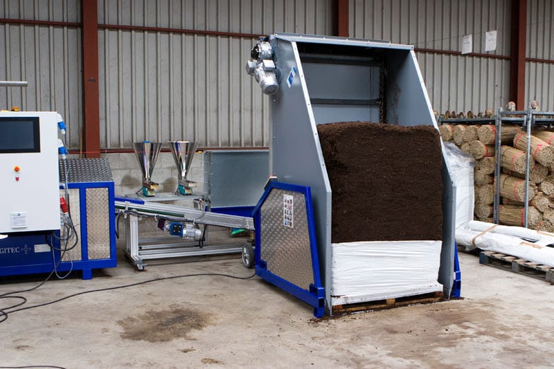 El dosificador de Big-Bale Logitec Plus DB40 es la solución perfecta para procesar pacas grandes comprimidas de hasta 2,60 m de altura. El Big-Bale DB40 recupera el volumen original del sustrato tal como estaba antes de la compresión, sin afectar su estructura.