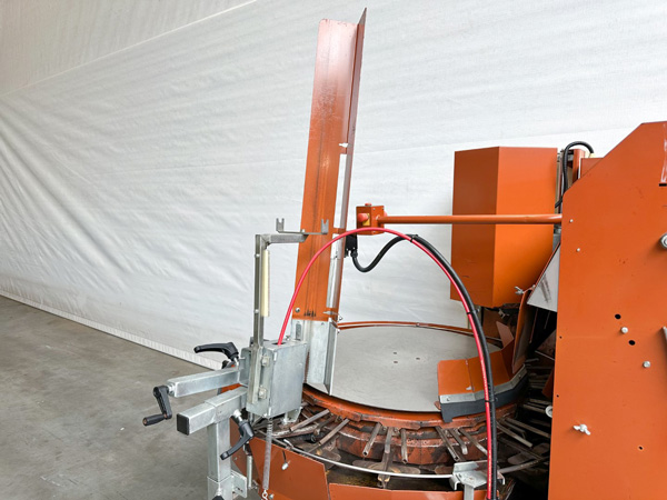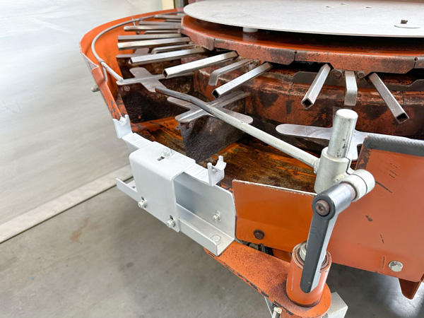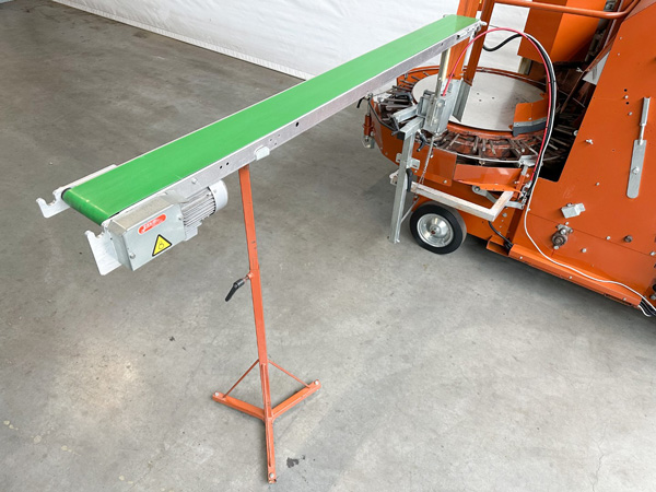 La corona giratoria de macetas libre de impactos está provista de una regulación central para el diámetro y la altura de las patas, por lo que no es necesario ajustar la altura de la cinta de transporte en la salida en pendiente.