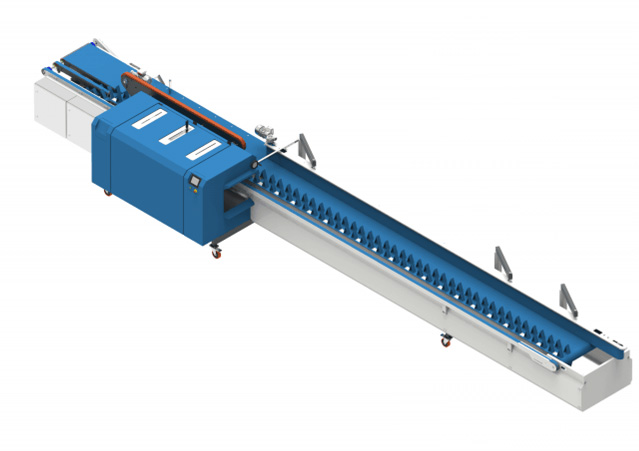 Entre las características de la línea de corte Drop & Chop Havatec, ésta cuenta con una longitud de procesamiento de 30 a 90 cm, podrá trabajar de dercha a izquierda o viceversa o puede elegir entre una cuchilla de corte doble o una sierra de alta frecuencia. Sus partes están compuestas por materiales de alta calidad como una cinta de triángulos realizada de PVC azul, una cinta de fijación con protección de espuma, la unidad de control de botón independiente y un sistema de parada de emergencia.