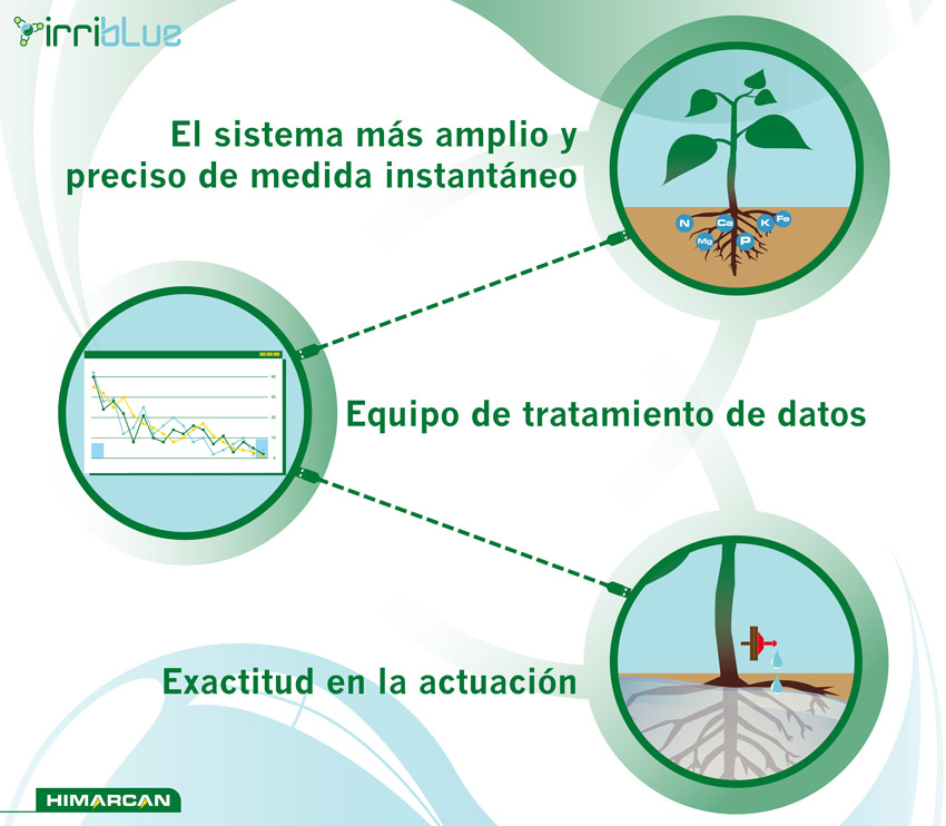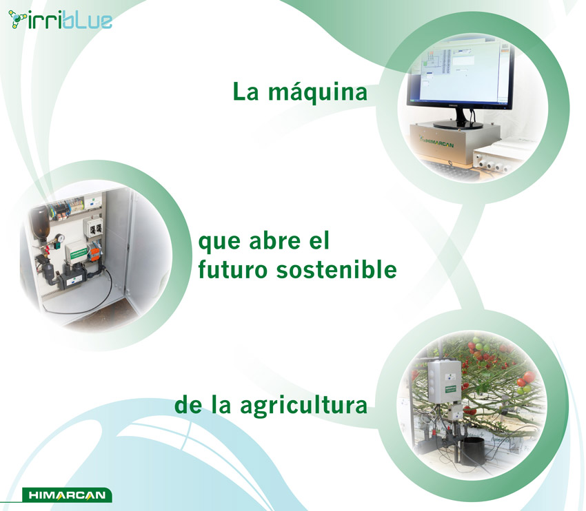 HIMARCAN ha desarrollado una investigación en los dos últimos años que ha dado como resultado una herramienta, IRRIBLUE, que revoluciona la forma de regar y fertilizar en cualquier tipo de cultivo, en suelo (HIREDSOIL) o en sustrato (HIREDHYDROPONIC). Fruto de la aplicación de los sensores mas fiables y la experiencia de 30 años en el sector de la agricultura intensiva nos ha llevado a automatizar y obtener información de lo que ocurre alrededor de la raíz tanto en suelo como en sustrato, así como en en el ambiente de la planta (clima). El ahorro en agua y fertilizantes es considerable porque el suministro es mucho más exacto y racional, haciendo trabajar las maquinas de riego a su máximo rendimiento. Para tomar decisiones hay que tener datos. IRRIBLUE, es la herramienta, el ordenador, que chequea y nos da información del entorno de la planta para que el técnico y el agricultor decida dosificar, ajustar y ahorrar con el máximo de precisión contribuyendo a una agricultura mas rentable, sostenible y no contaminante.